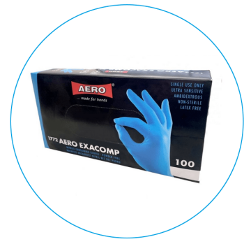 AERO Exacomp® zahrnuje jednorázové rukavice z materiálu nitril/vinyl.