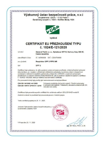 - Certifikace EN 149:2001 + A1:2009