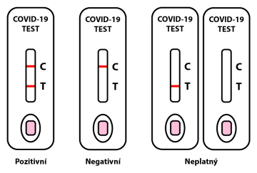 - COVID-19 POZITIVNÍ: Kromě přítomnosti proužku C, je-li zobrazen i proužek T, test indikuje přítomnost COVID-19 (SARS-CoV-2) antigenu ve vzorku. Výsledek je pozitivní COVID-19.