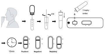 - Negativní výsledek může nastat, pokud je množství antigenu COVID-19 (SARS-CoV-2) přítomného ve vzorku pod detekční limity testu nebo se nepodařilo shromáždit antigen COVID-19 (SARS-COV-2)